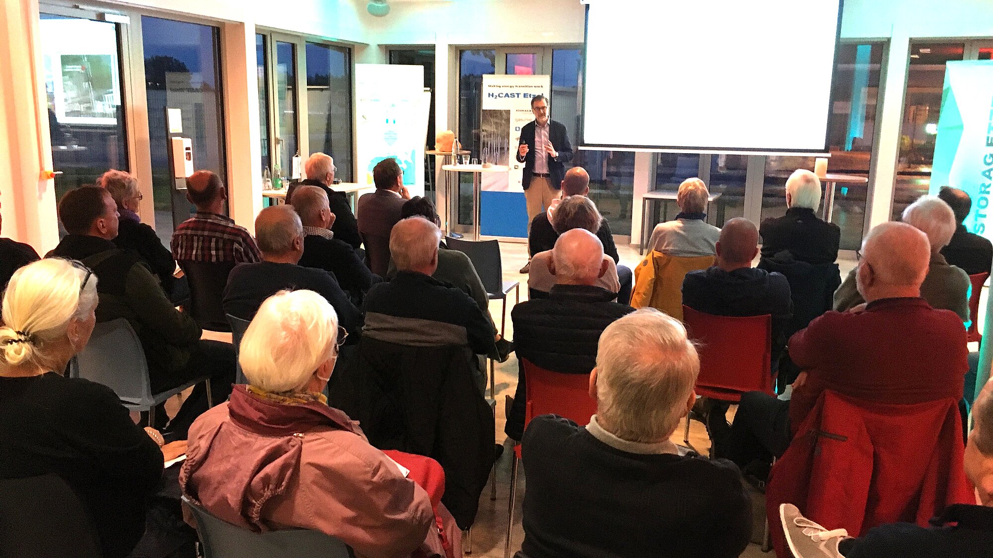 Mitarbeiter der STORAG ETZEL haben am 24.10.2023 bei einer abendlichen Veranstaltung interessierten Bürgern und Anwohnern der Kavernenanlage Etzel im Rahmen einer Nachbarschaftsinformation aktuelle Themen am Standort Etzel vorgestellt.